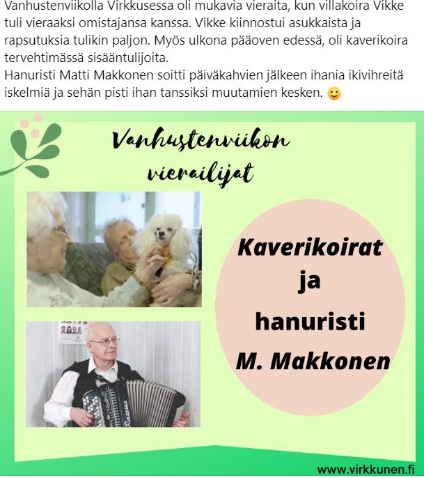 Alla kolmen kuvan somepostaus kuvitteelliseen hoitokotiin. Eka kuvasta puuttuu tekstit, kun en löytänyt sitä kuvaa tekstin kanssa enää.